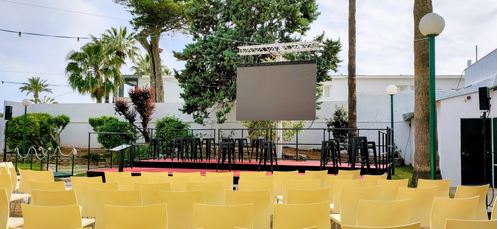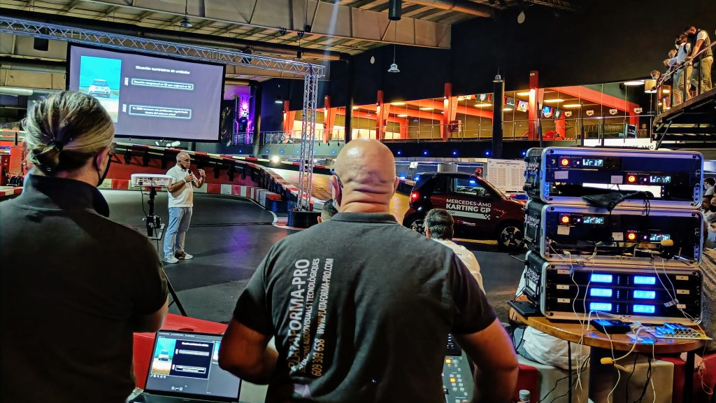 Disposem d’equips de so, il·luminació, pantalles, projectors, càmeres, sistemes de control,